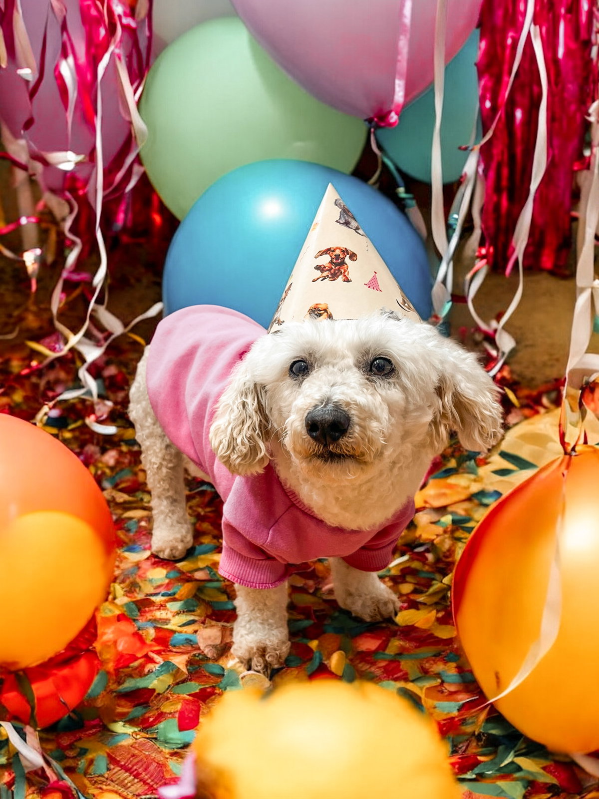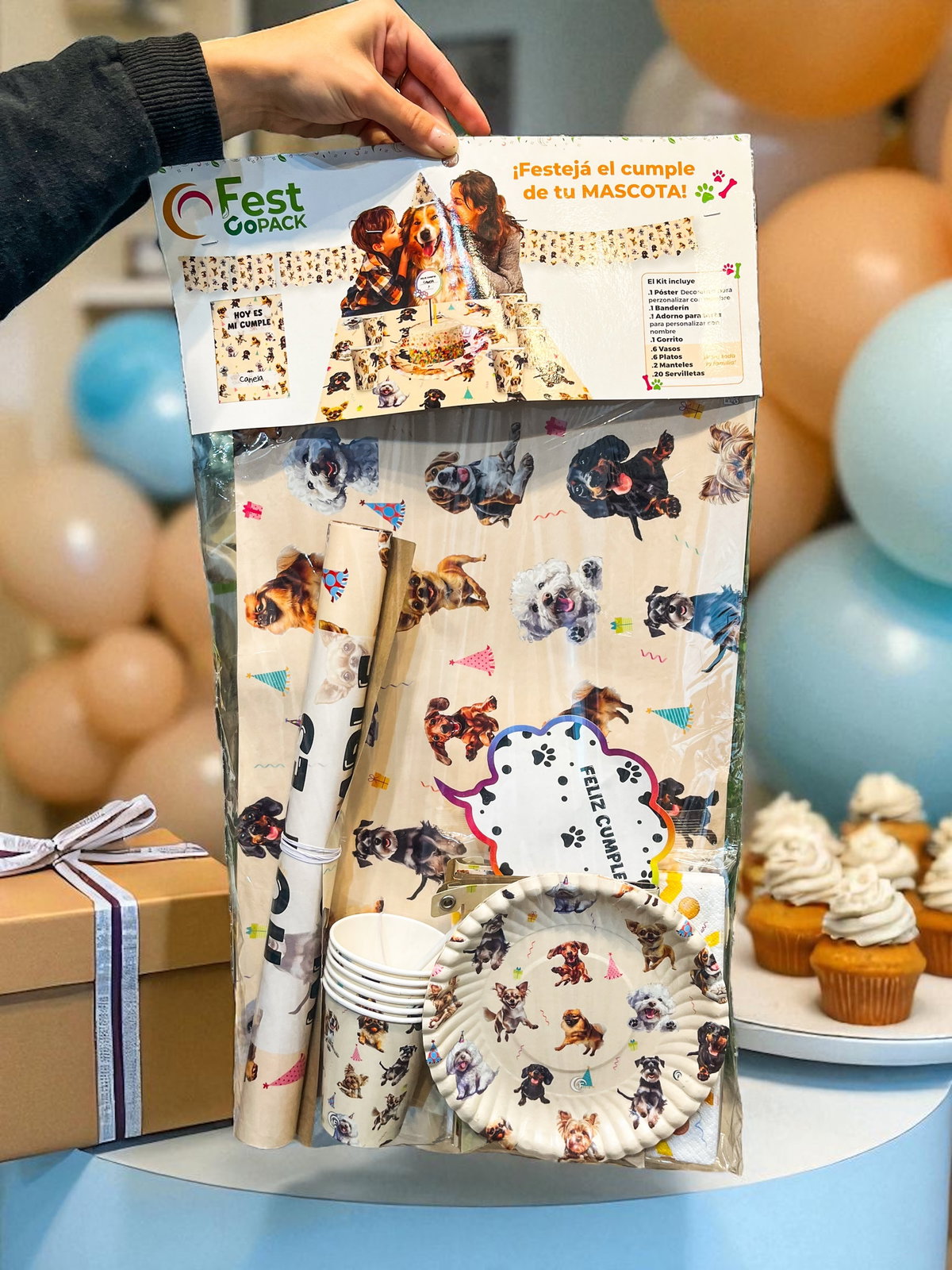 Celebra el cumpleaños de tu mascota con el Kit de Cumpleaños, el conjunto perfecto para una fiesta temática llena de alegría. Incluye póster decorativo y adorno para torta personalizables con el nombre, banderín, gorritos, manteles, platos, vasos y servilletas, todos con divertidos diseños de perritos. ¡Convierte cada detalle en una experiencia única y divertida para tu mejor amigo!