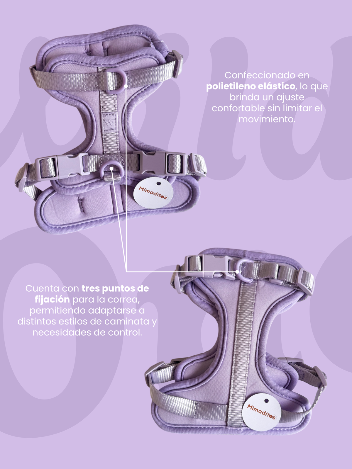 Arnés de paseo ligero, suave y resistente, ideal para acompañar a tu mascota en cada salida con total comodidad.