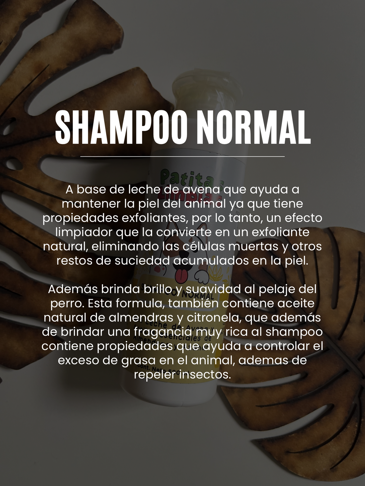 Esta fórmula, también contiene aceite natural de almendras y citronela, que además de brindar una fragancia muy rica al shampoo contiene propiedades que ayuda a controlar el exceso de grasa en el animal, además de repeler insectos.